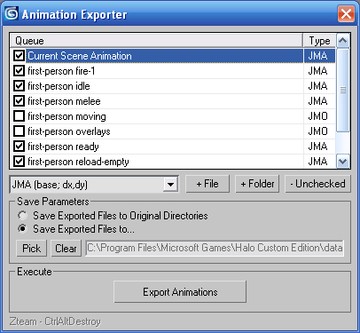 The CAD animation exporter by CtrlAltDestroy was a 3ds Max and Gmax plugin allowing all types of animations to be exported from a rigged scene. It featured IK (inverse kinematics) support, biped support, and batch exporting from multiple scenes. The script was originally written for 3ds Max 7 in 2008 and is now improved upon by the Halo CE Max Toolkit project.